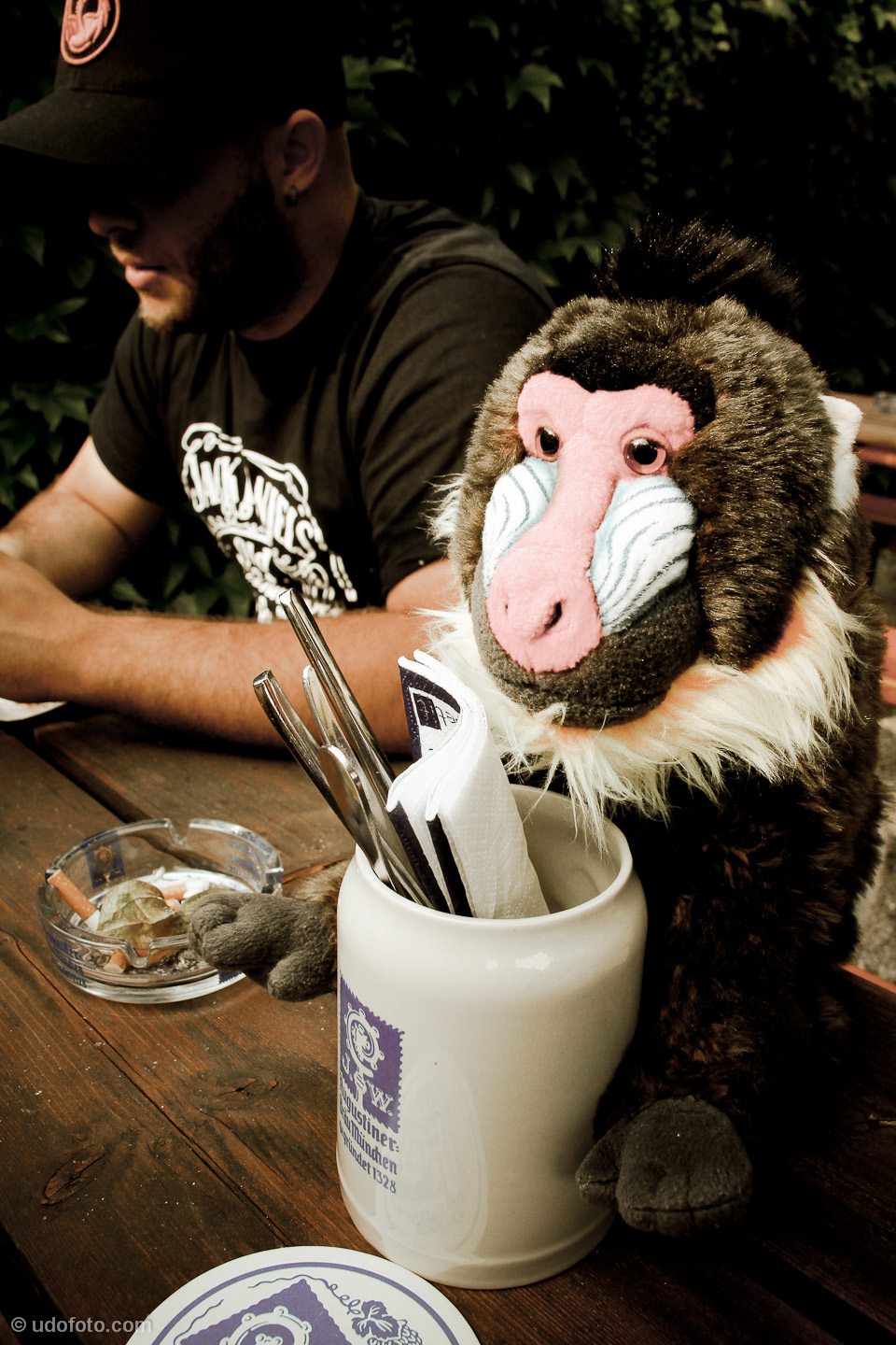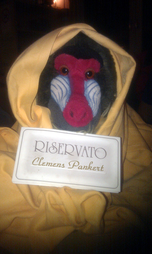 Wir erhalten Berichte, dass sich ein unsympathischer Mandrill in Lokalen unterwegs ist und sich als Ruperto ausgibt. Es ist unsere Pflicht, euch vor diesen Scharlatan zu warnen. Die jüngsten Wikileaks Informationen belegen, dass er der Schkrokkoni Bande angehört und äußerst aggressiv ist. Demnach soll er auch allergisch auf Vernatsch sein. Solltet ihr euch also trotz des unten stehenden Fahndungsfotos nicht sicher sein, dann spendiert dem Affen am besten a Glaserl Feanatsch – was im Übrigen beim echten Ruperto sowieso nie ein Fehler wäre!