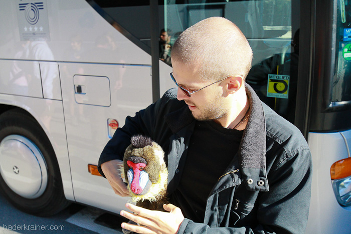 Die Südtiroler Knödel sind dem Ruperto wohl nicht genug. Wie nun erst bekannt wurde, ist der Mandrill in Prag gesichtet worden, wo er sich mit Landsfrauen aber auch mit fernöstlichen Mädchen vergnügt hat. Wie er ins Ausland gelangte ist bislang nicht bekannt. Gewiss ist nur, dass er auf dem gesamten Königsweg auf sich aufmerksam machte und große Mengen an Bier vertilgte (wenn das Clemens wüsste…). Angeblich hat er erst ganz schön tief ins Glas und später auf der Karlsbrücke tief ins Wasser geschaut.