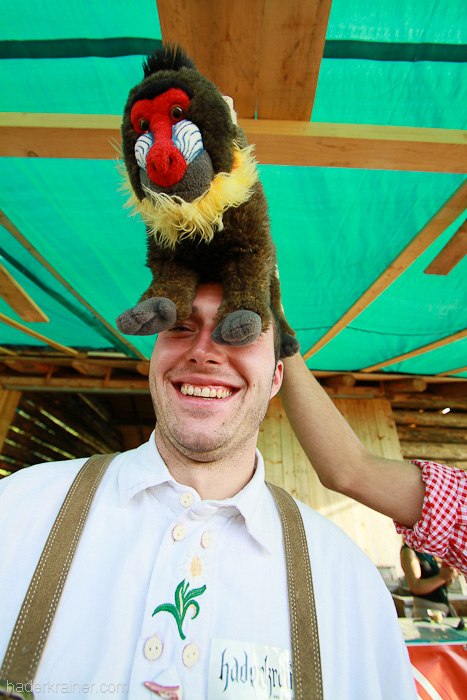 Schließlich verbannte ihn Richter Gnadenreich auf den Haunold, wo er in der Einsamkeit Enthaltsamkeit lernen solle. Kaum zurück, und eine Nacht ohne Aufsicht, waren aber alle guten Vorsätze passé, und am Morgen fand man den potenten Pavian in einer wilden Orgie mit diversen Säugern.